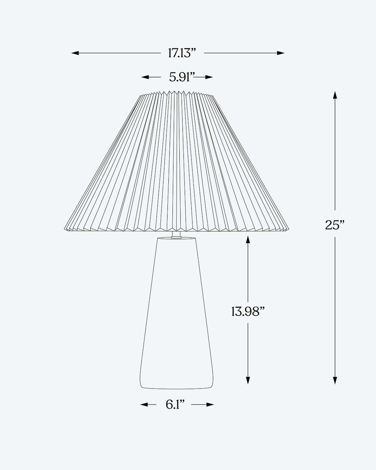 A timeless beauty blending modern appeal and classic design. Gwen features a beautiful linen pleated shade and a striking ceramic base. Add a statement while lighting your nightstand or entryway console.