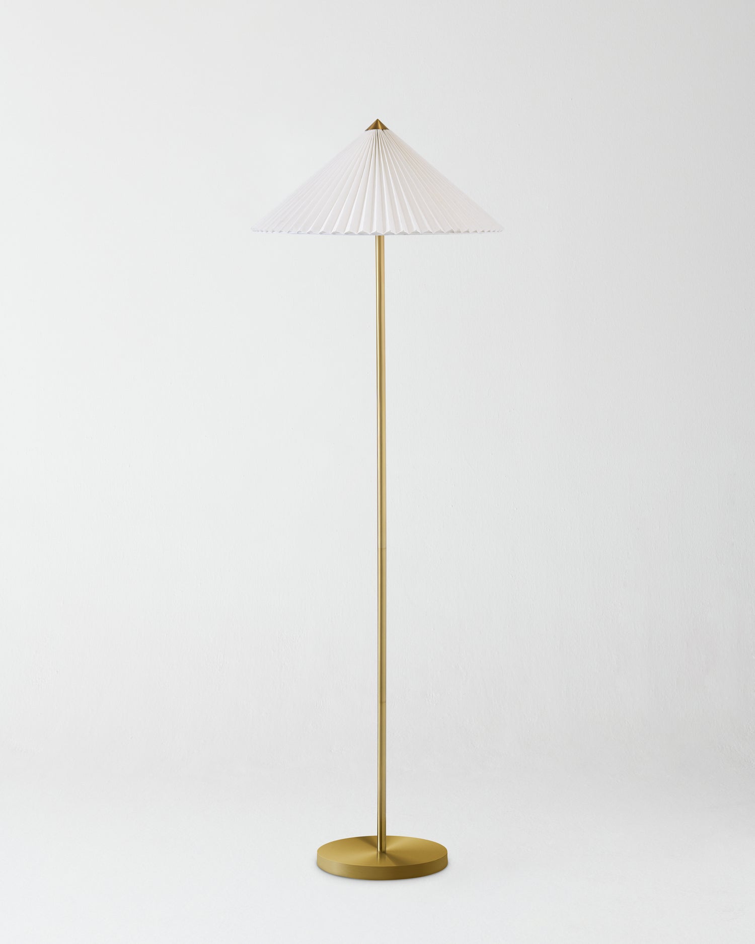With its pleated shade and slender brass stem the Sienna Floor Lamp adds an elegant touch to any space. The linen empire shade capped with a brass cone gives this simple lamp a stylistic touch. Bring a soft warm glow to your bedroom or living room with the Sienna.